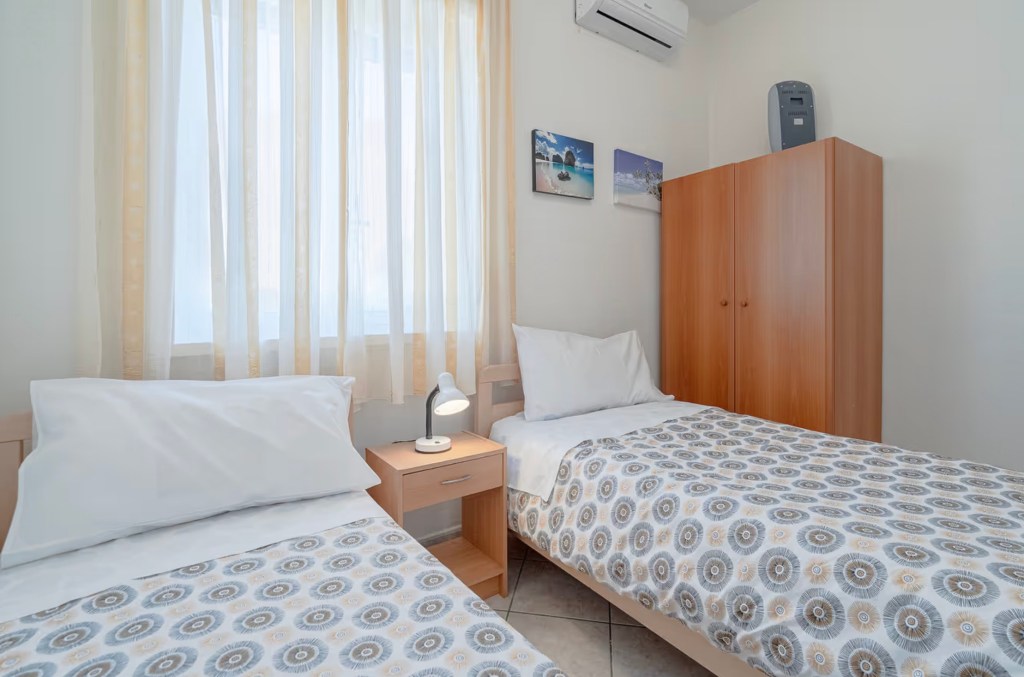 La terza stanza ospita due letti singoli che, all’occorrenza, possono diventare un comodo letto matrimoniale: una soluzione perfetta per famiglie o amici in viaggio.